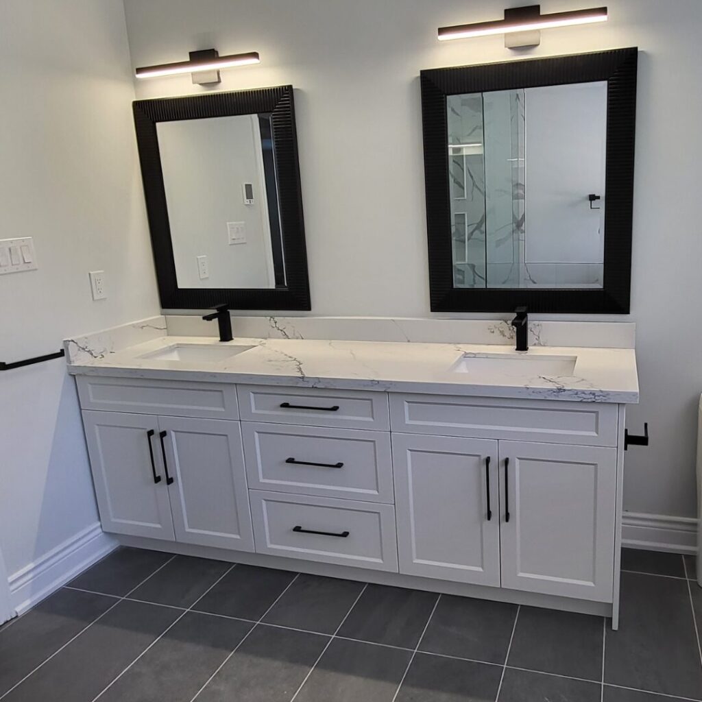A bathroom is not complete without complimentary bath cabinetry. Whether you’re looking for a bathroom vanity for a tight and compact space or updating a large master bathroom, we have the right options for your needs. Build your custom vanities with KitchenWerx and we’ll bring your project to life!